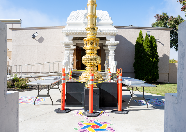 Despite the challenges, the committee remained focused on completing the project. In April 2022, the Dwajasthambam was installed between Rajagopuram and the main temple as designed with gold electroplated ornaments. The inauguration ceremony for the Dwajasthambam held on May 15th 2022. The ceremony was a grand success, with thousands of devotees gathering to witness the auspicious event. The ceremony was conducted according to the traditional Hindu customs, and it was a momentous occasion for the temple and the community.